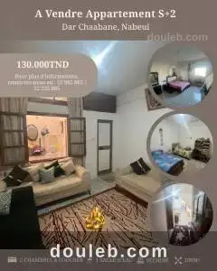 l?agence immobilière le boulevard vous propose a #vendre #référence 1465a un appartement s2 situé dans un immeuble r2 à dar chaabane nabeul. il se compose d?un salon de deux chambres à coucher d?une cuisine d?une salle d?eau et séchoir superficie 100m² 15 minutes de la plage à pied proche de toutes les commodités (lycée magasin restaurant banque?) titre foncier prix tnd 2 pieces.