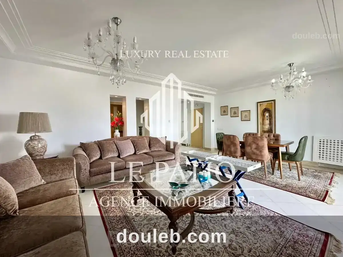 le patio immobilier tunisie propose à la location un appartement s+3 meublé avec vue sur mer à la marina de gammarth. étage : 1er étage avec ascenseur état : meublé composition : salon avec balcon salle à manger cuisine entièrement équipée (hotte, plaque, four, micro-ondes, réfrigérateur, lave-vaisselle, lave-linge, machine à café, vaisselle) séchoir suite de service avec placard et salle de douche suite parentale avec dressing et salle de bain chambre à coucher avec dressing troisième chambre aménagée en séjour salle de bain salle d'eau climatisation centrale chauffage central deux places de parking loyer : 5 500 dinars / mois pour plus d’informations ou pour organiser une visite, contactez-nous sur le 00216 28 287 487 (whatsapp)