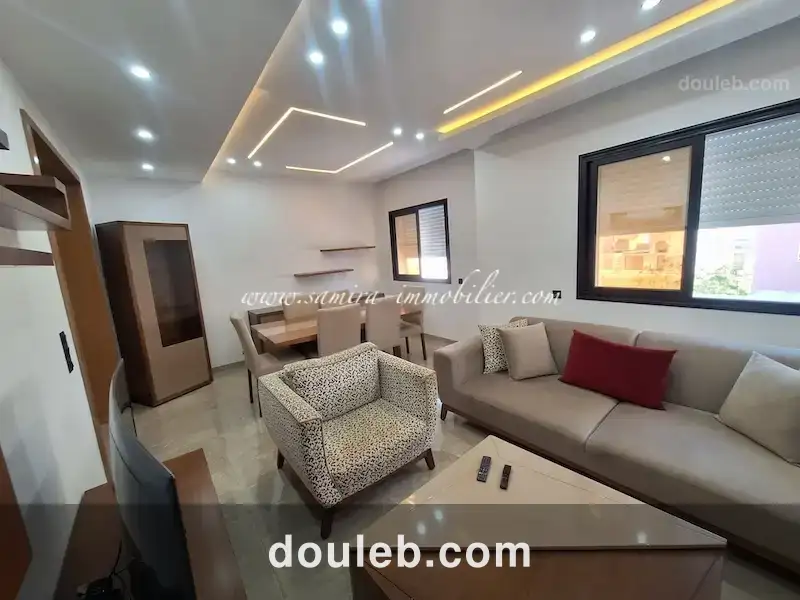 réf : l1200 appartement naim disponible à la location annuelle un appartement moderne situé dans une petite résidence privée à afh mrezka il se compose d’un salon-salle à manger, une cuisine équipée, deux chambres à coucher et une salle d’eau chauffage central et climatisation prix : 1500 dt par mois pour toutes informations, veuillez nous contacter sur : tél : +216 23513175 ou +216 23092161