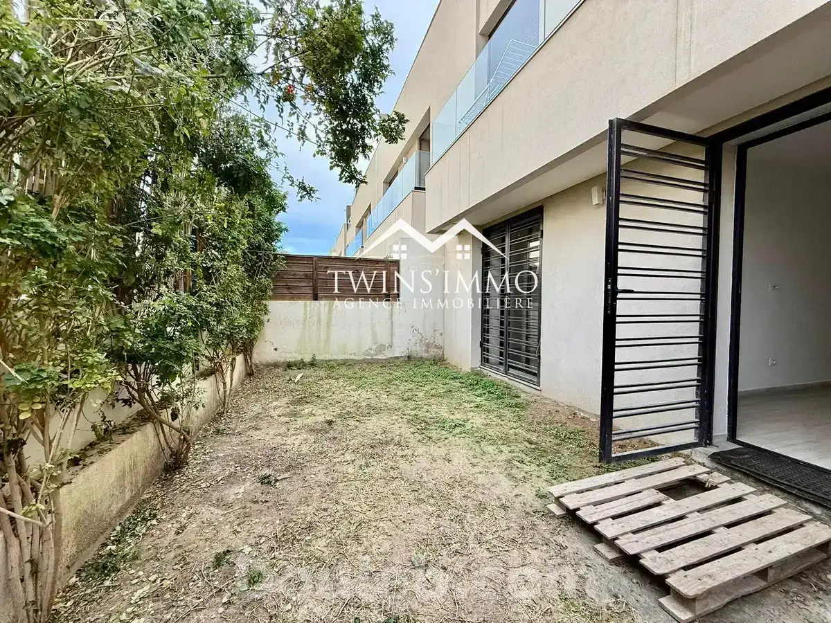 emplacement : la marsa superficie : 100 m² typologie : s+2 état : vide étage : rez de chaussée composition : un salon une cuisine équipée de hotte, plaque, four, micro-ondes et réfrigérateur deux chambres à coucher avec dressings une salle de douche un jardin climatisation : split-système chauffage central une place de parking au sous-sol