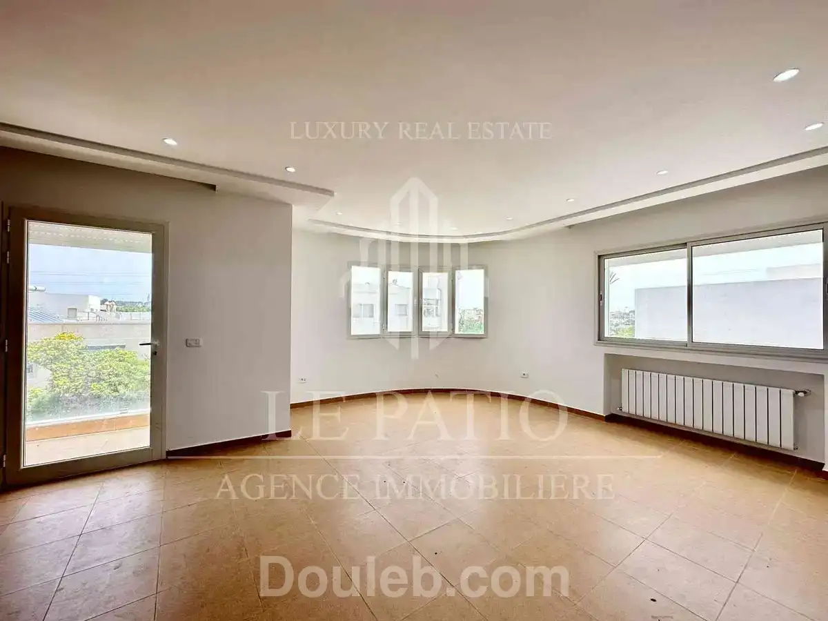 le patio immobilier tunisie met à la location un appartement au jardins de carthage avec deux places de parking . il se compose : d'un salon avec balcon, une salle d'eau invités et une cuisine équipée avec séchoir. la partie nuit se compose de deux chambres à coucher avec une salle de bain et une suite parentale. pour plus d’informations ou pour organiser une visite, contactez-nous au whatsapp 00216 28 287 487.