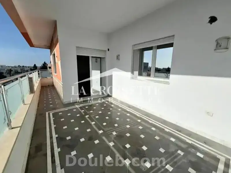 la croisette immobilière tunisie vous propose à la location un appartement s+4 occupant le premier étage d’une résidence privée à la marsa. ce dernier est composé par un salon-salle à manger donnant sur une terrasse, d'une cuisine aménagée et équipée, d'une salle d'eau invités, de quatre chambres à coucher et d'une salle de bain. l'appartement est équipé du chauffage central. ref:zal2159