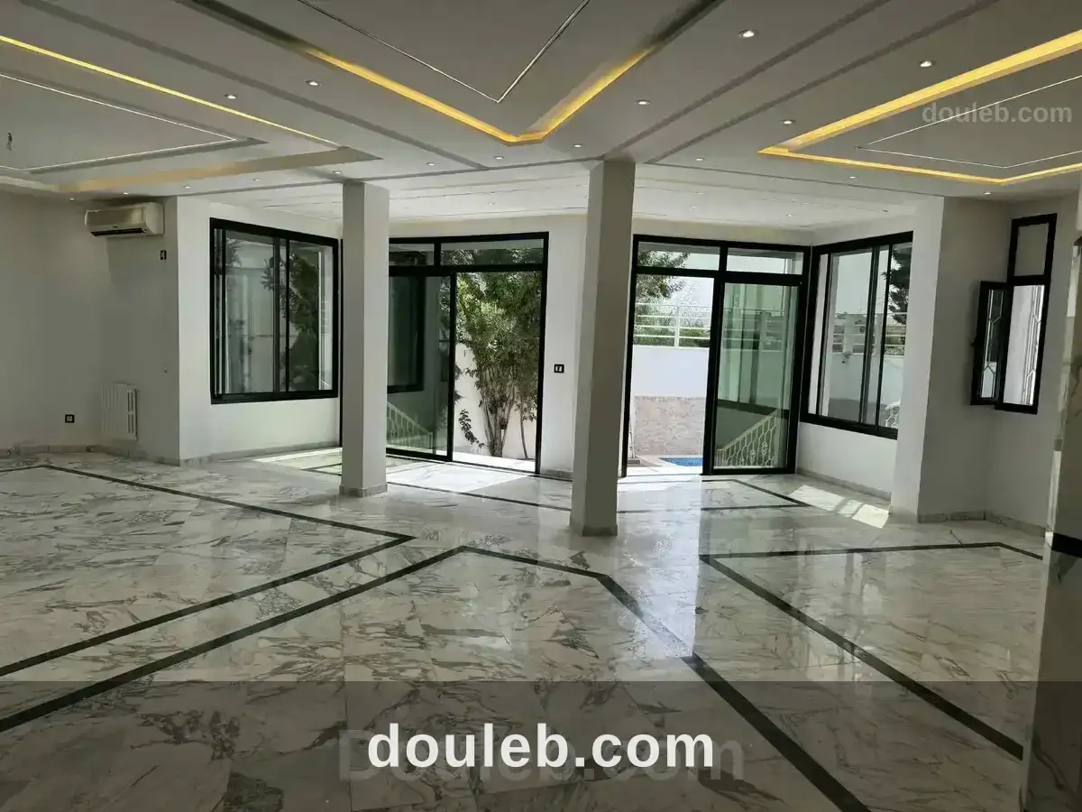 l'agence darek immobilière vous propose à la location une belle villa en s7située dans un quartier résidentiel au berge du lac . cette demeure est érigée sur trois niveaux et se compose comme suit : au rez-de-jardin : un grand garage qui peut abriter 4 voitures, une salle de bain, une cuisine , 3 chambres à coucher et une chambre de service. cette demeure est érigée sur trois niveaux et se compose comme suit : au rez-de-chaussée: un grand salon-salle à manger donnant sur une piscine et un jardin gazonné et arboré, un séjour séparé, une grande cuisine équipée. a l'etage on trouve 3 chambres à coucher et une suite parentale et une salle de bain. la villa est équipée de la climatisation split et du chauffage central . prix: 11500 dt/ht/mois pour plus d'informations veuillez rappeler notre agence au 51603900/99603906/51614130