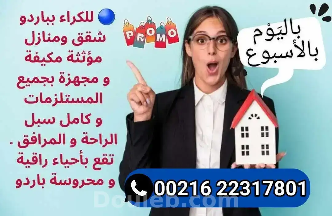 bonne occasion pour une location courte ou moyenne durée. a louer des appartements et des studios meublés s / s+1 / s+3 / s+4 tous les standing , très bien équipés avec des prix très raisonnables pour plus d'info contactez 22317801