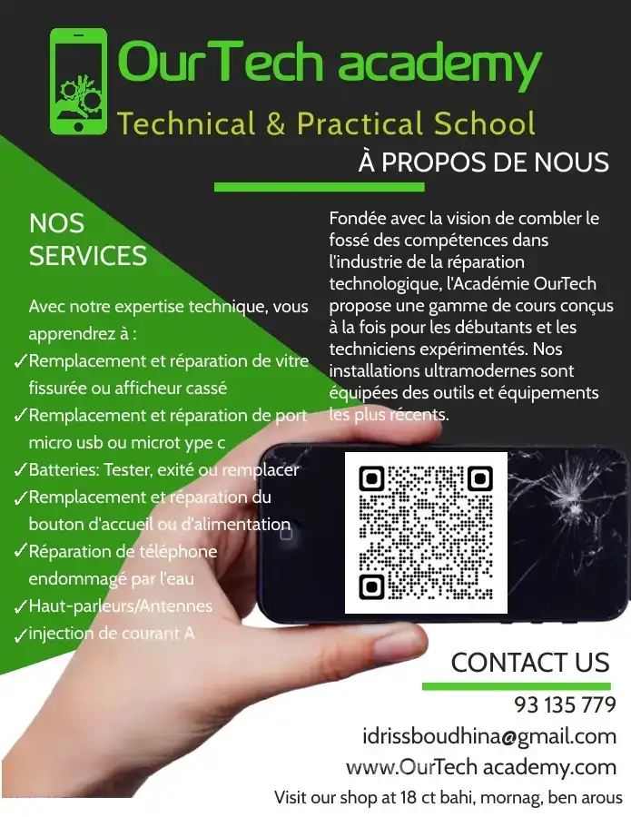 ✅ العنوان : ourtech academy ، 99 شارع فرنسا، ر، بن اعروس ☎ الهاتف:931357 79