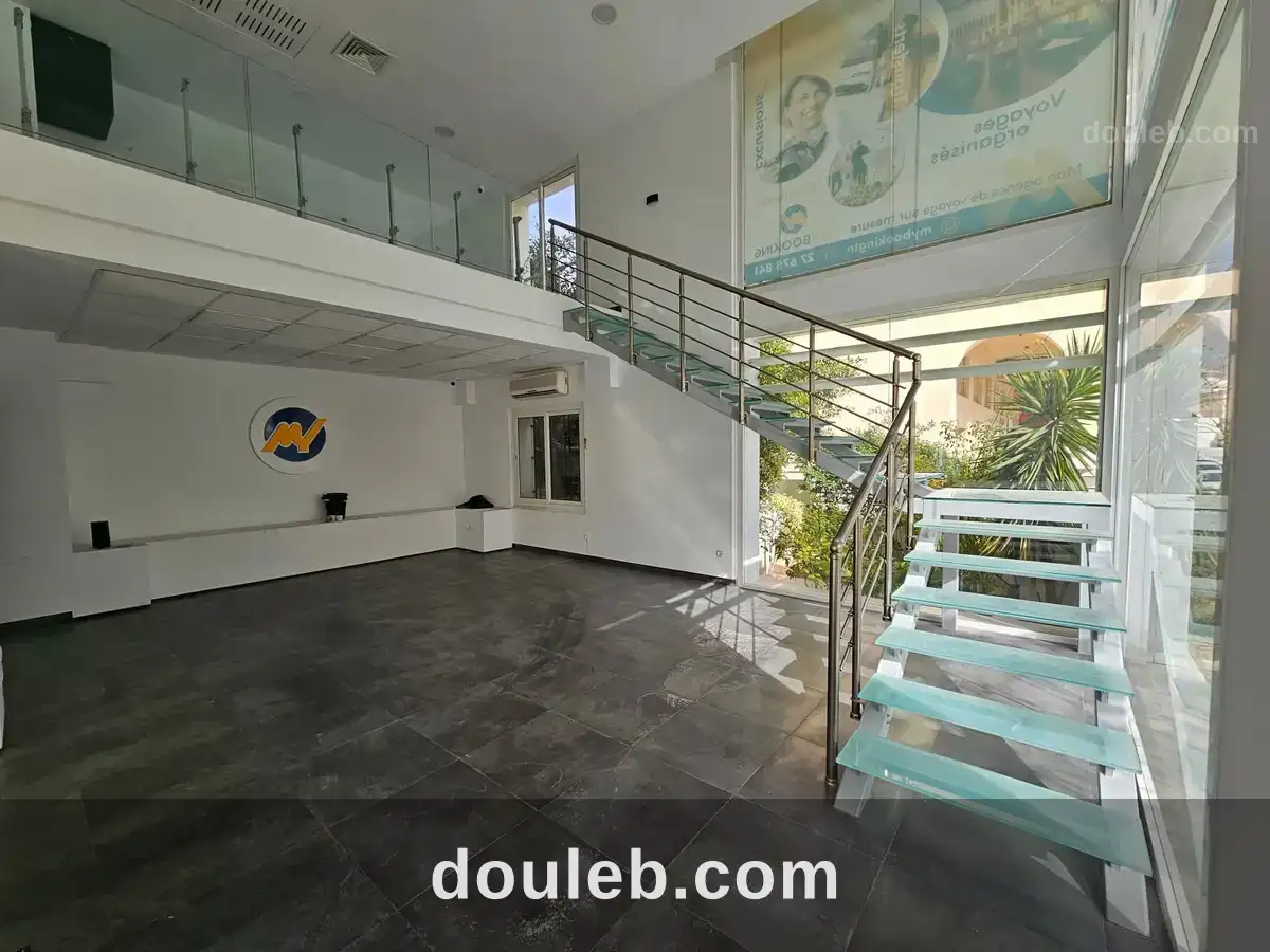 les berges du lac 2 : à louer local commercial bureautique on vous proposons à la location un local moderne en double hauteur, situé dans l’un des quartiers les plus prisés et dynamiques des berges du lac 2. ce bien bénéficie d’une belle luminosité naturelle grâce à ses grandes ouvertures et offre un cadre idéal pour développer votre activité. le local se distingue par son architecture contemporaine, un espace principal spacieux ainsi optimal pour bureaux, showroom, siège de société ou activité de services. local adapté à plusieurs activités commerciales ou bureautiques double hauteur offrant un fort potentiel d’aménagement espace lumineux et agréable quartier stratégique proche de nombreuses entreprises et commodités toutes activités autorisées sauf café et restauration loyer mensuel : 5 000 dinars htva