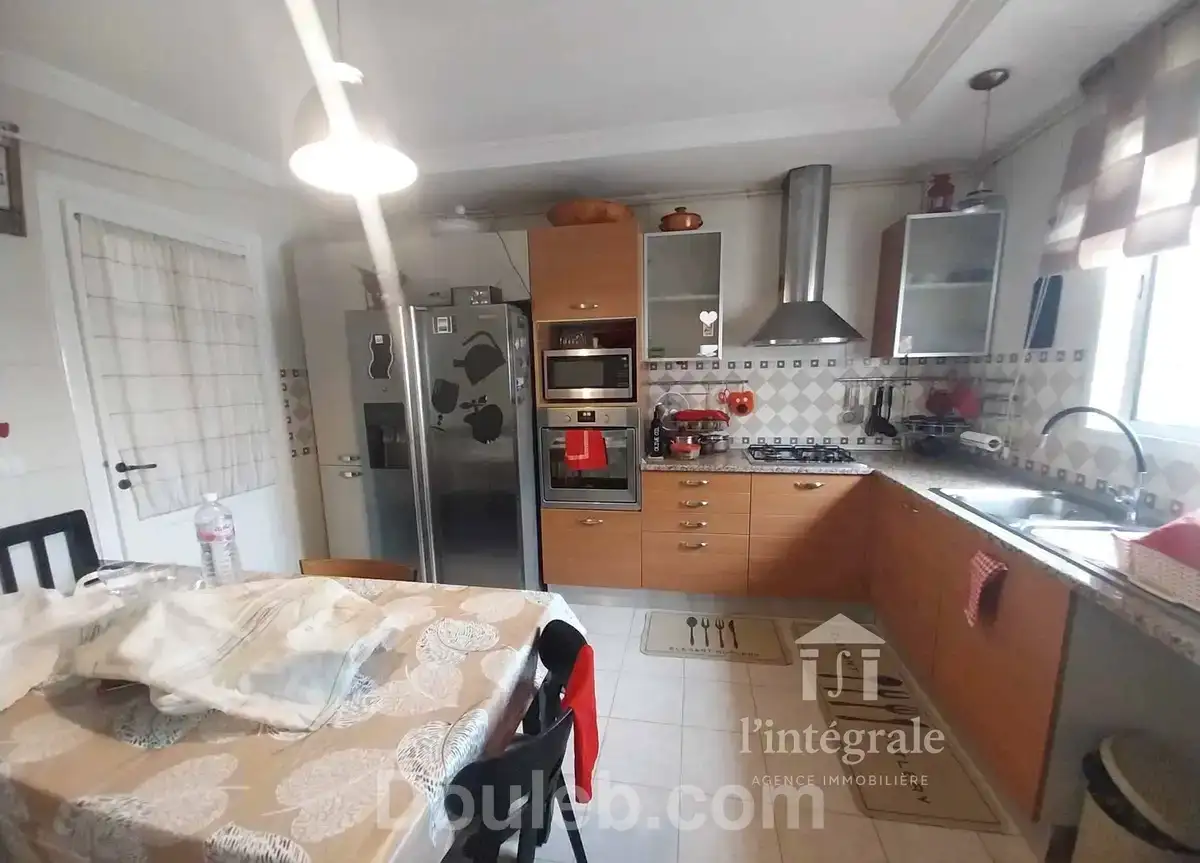 nous mettons en #vente un très bel appartement s+4 de 165 mètres carrés de superficie totale dont 135 mètres carrés nette habitable. etat excellent, spacieux, lumineux et prêt à accueillir votre famille dans le plus grand confort ! situé au 2éme étage dans une résidence r+2 calme, sécurisée et bien entretenue à #riadh landalous (derrière carrefour). composé comme suit : * un grand salon salle à manger avec accès à une jolie terrasse * une suite parentale avec salle d’eau (douche) et un grand dressing * trois autres chambres, dont deux avec dressings intégrés * une cuisine moderne entièrement équipée avec séchoir * une salle de bain + une salle d’eau séparée * chauffage central + climatiseurs dans toutes les pièces * deux places de parking en sous sol * appartement bien agencé aucun travaux à prévoir résidence sécurisée 24h24 prix négociable pour clients sérieux titre bleu disponible pour plus d'informations et de photos veuillez visiter notre page facebook l'intégrale immo ou contactez le 70 215 880 / 52 145 909 / 21 001 320