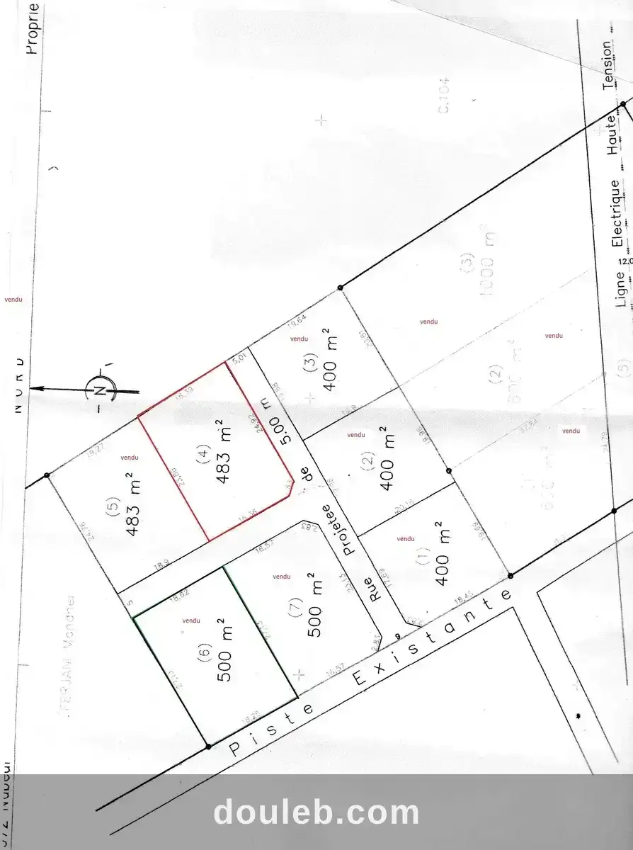 a vendre terrain menchar 483 m2 clôturée sur deux facades entouree des villa menchar a 8 km de hammamet