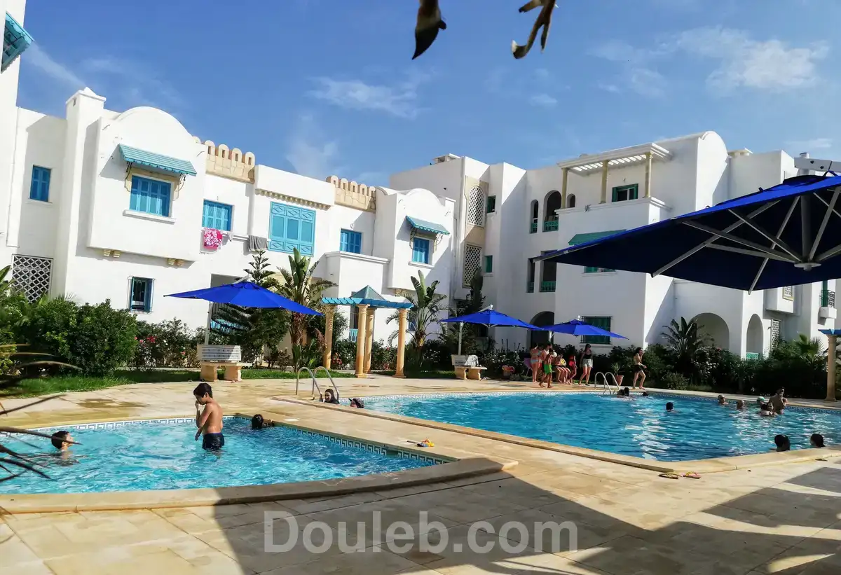 app s+1 neuf 1er étage avec piscine résidence gardée dispose un salon + chambre à coucher + une cuisine équipé + chauffage centrale et climatiseur une place de parking privative