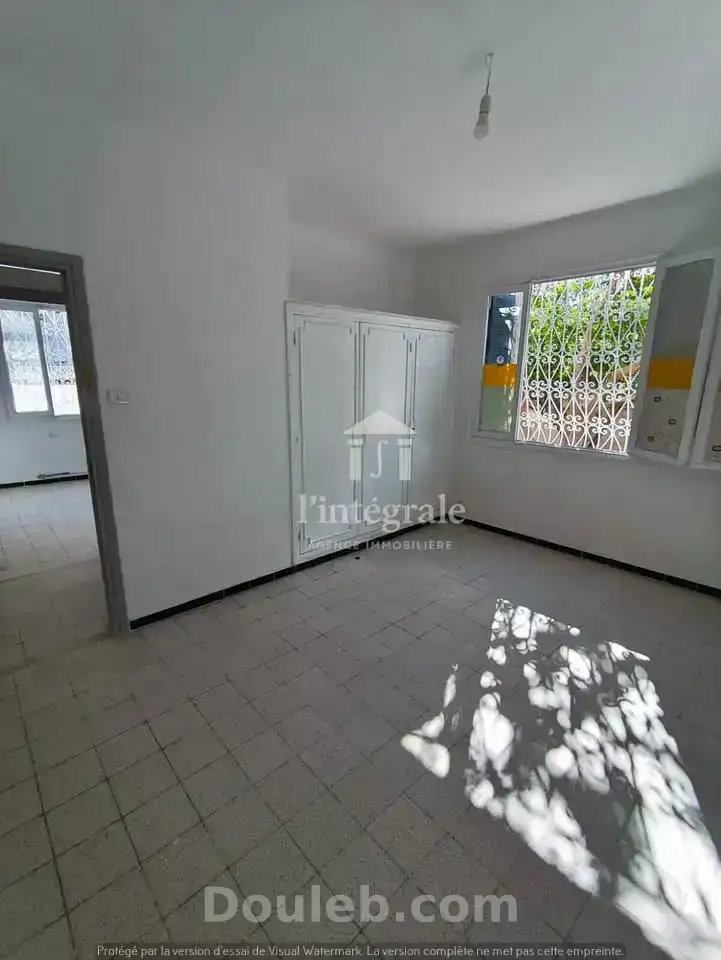 a #louer un réez de chaussée d'une villa s+3 avec une entrée indépendante et jardin privatif pour usage bureautique bien situé sur une artère principale à #menzah5. il se compose de : * 3 spacieuses pièces * un salon * une cuisine * salle d'eau il est équipé de chauffage central et de climatisation. pour plus d'informations et de photos veuillez visiter notre page facebook l'intégrale immo ou contactez le 70 215 880 / 52 145 909 / 21 001 320