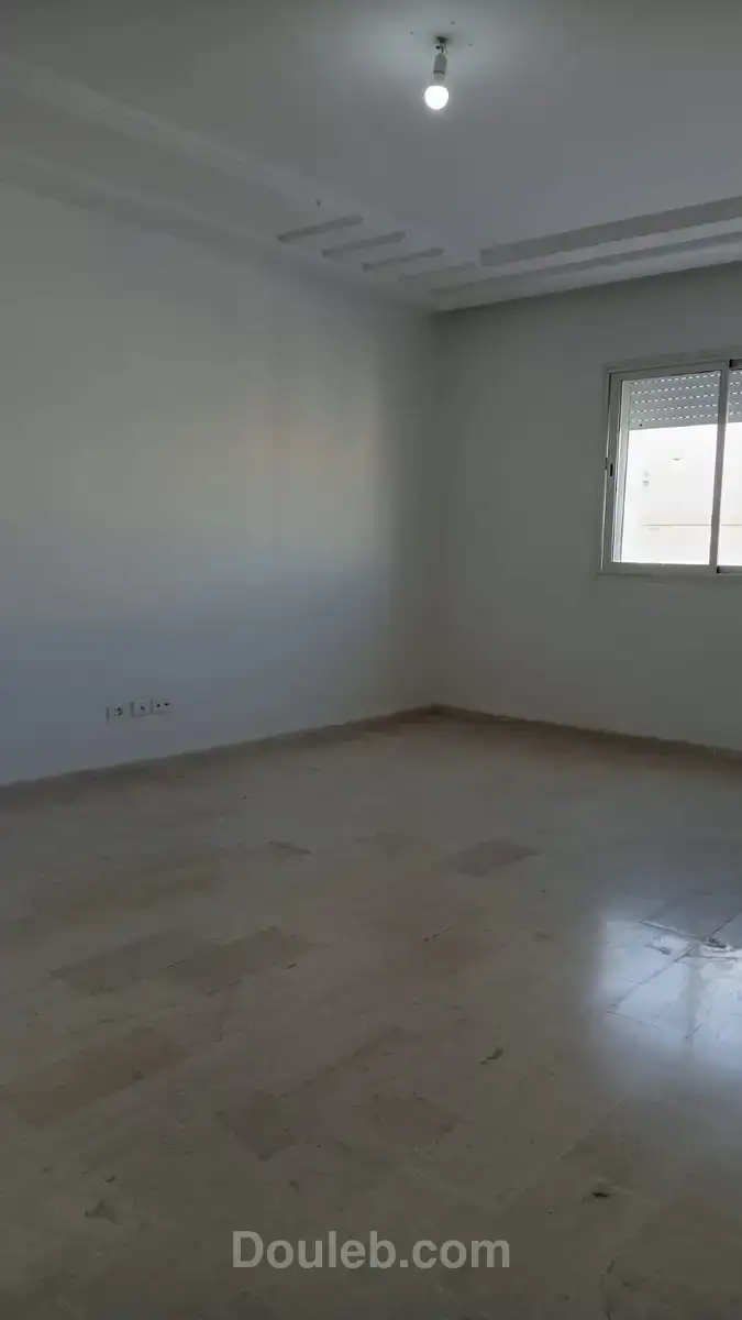 a louer un s plus trois bien orienté situé dans une résidence bien gardée et sécurisée équipée de deux ascenseurs sise aux jardins de l'aouina côté collége zoubeir turki l'appartement se compose d'un salon , d'une cuisine indépendante équipée d'une hotte aspirante, d'une plaque à gaz et d'un four électrique complétée par un séchoir , d'une suite parentale , de deux chambres à coucher et d'une salle de bain , des placards de rangement au couloir . l'appartement est équipé d'un chauffage central agence immobilière hannibal immob
