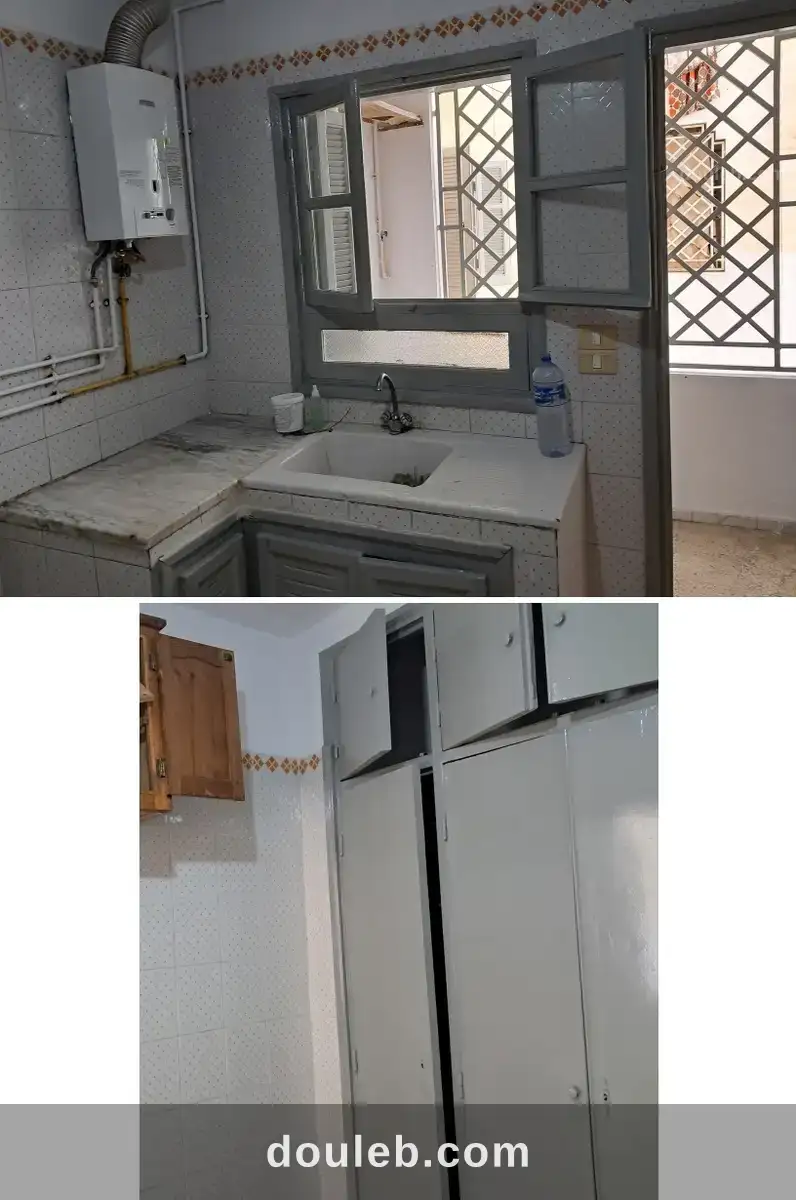 à louer un appartement situé au deuxième étage, et composé d'un salon, de deux chambres, une cuisine avec un séchoir et un placard, une salle de bain, une place de parking.