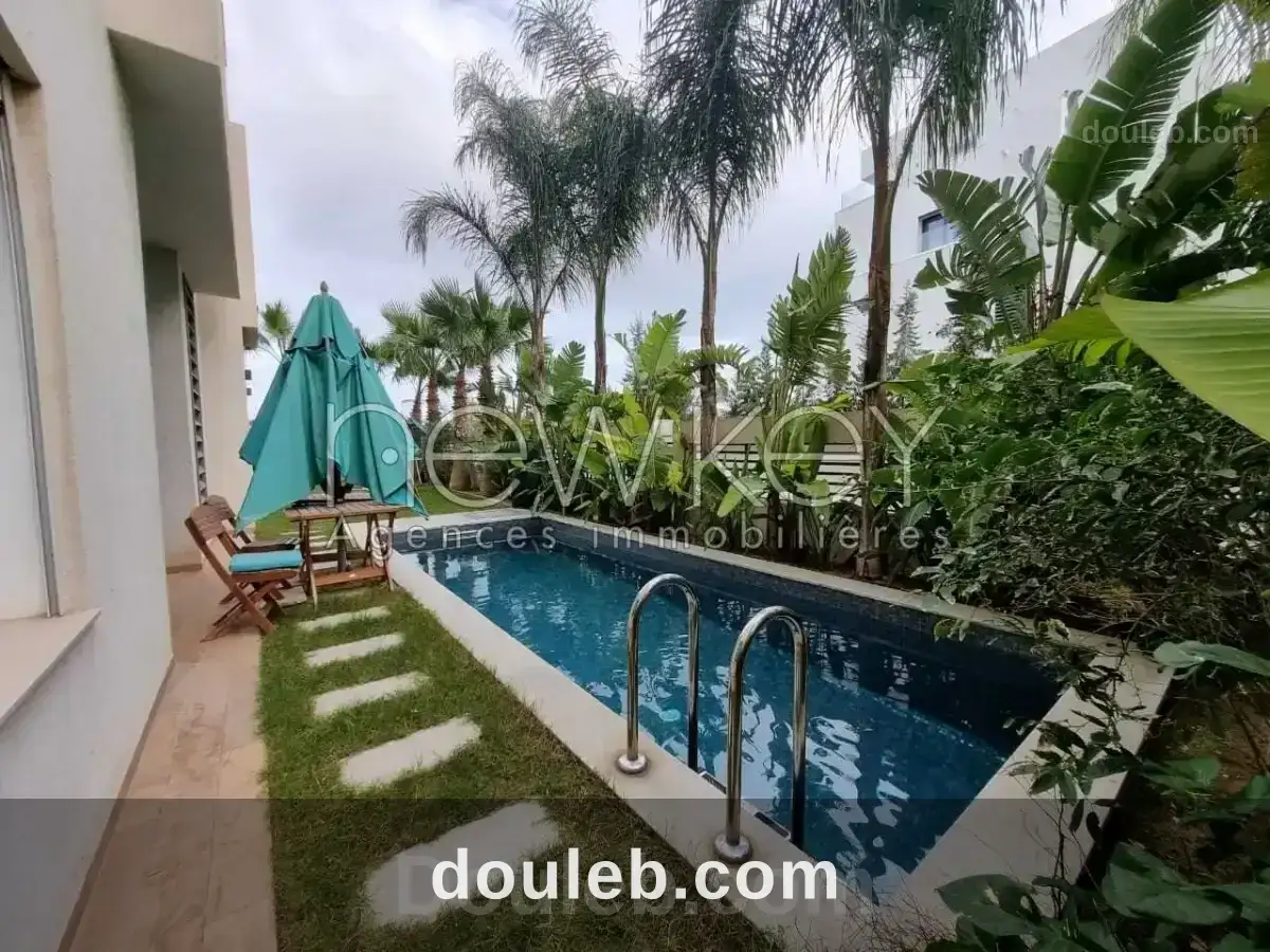newkey la marsa met à la location un joli appartement meublé en s+4 avec jardin et piscine dans une résidence sécurisée à la marsa . ce dernier est composé d' un grand salon qui donne sur le jardin, d'une cuisine équipée avec un grand séchoir, d'une salle d'eau pour les invités, d'une suite parentale, de trois chambres à coucher et d'une salle de bain. l'appartement est chauffé et climatisé et dispose de deux place de parking au sous sol .