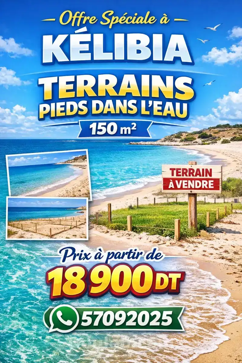 offre spéciale à kélibia terrains pieds dans l’eau 150 m² prix à partir de 18 900 dt 57092025