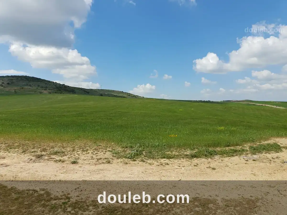 terrain agricole à lansarine teborba sur la route goudronnée d'une superficie de 42 ha a 35 milles dinars l'hectare. le terrain est a 40 km de tunis. titre bleu et une bonne qualité de terre.
