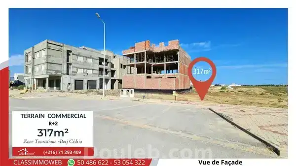 a vendre un terrain de coin de 317 m2, offrant un potentiel incroyable pour vos projets commerciaux et résidentiels. situé dans la zone touristique de soliman plage, ce terrain est prêt à accueillir votre vision. caractéristiques du bien : terrain de coin de 317 m2, vocation r+2. prix attractif de 720 dt le m2. titre foncier individuel disponible. emplacement stratégique à seulement 2 minutes des commodités essentielles : magasin général, carrefour market, écoles, universités, et bien plus encore. deux façades principales offrant une exposition optimale : une donnant sur une route principale au sud et une autre orientée vers l'est menant directement à la plage. ce terrain est équipé de toutes les infrastructures nécessaires : eau. électricité. télécom. gaz naturel. assainissement. éclairage public. avec sa proximité au centre de tunis via la nouvelle autoroute (à seulement 30 minutes), ce terrain représente bien plus qu'un simple investissement. c'est une opportunité d'avenir à saisir dès maintenant ! pour plus d'informations et pour planifier une visite, contactez-nous au : tel ou whatsapp : (+216) 52 190 190