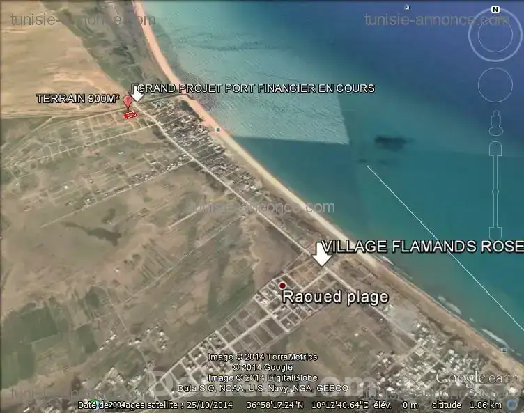 particulier vivant a l etranger vend 2 terrains de 410 m² ou un lot de 820 m²: situation exceptionelle a 50 m de l immense projet du grand port financier de tunis nord ( travaux en cours depuis le 1er mars 2014 ) situer en 2eme position du grand boulevard de la plage , 30 metre de façade avec cloture . titre foncier en coproprietè sain et en regle , excellent investissement , prix 300 dinard le m² a negocier, tel pour visite : 24189097 (disponible sur whatsapp).