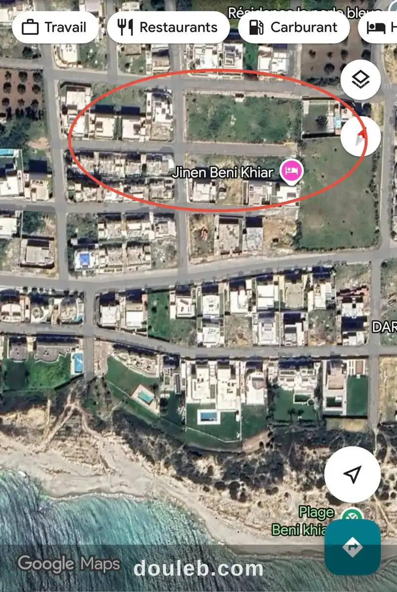 terrain 356m2 titre bleu individuel jumelé d'un seul coté (plus de superficie couverte) 4eme position (100m de la plage) jinene bni khiar nabeul prix m2: 790d