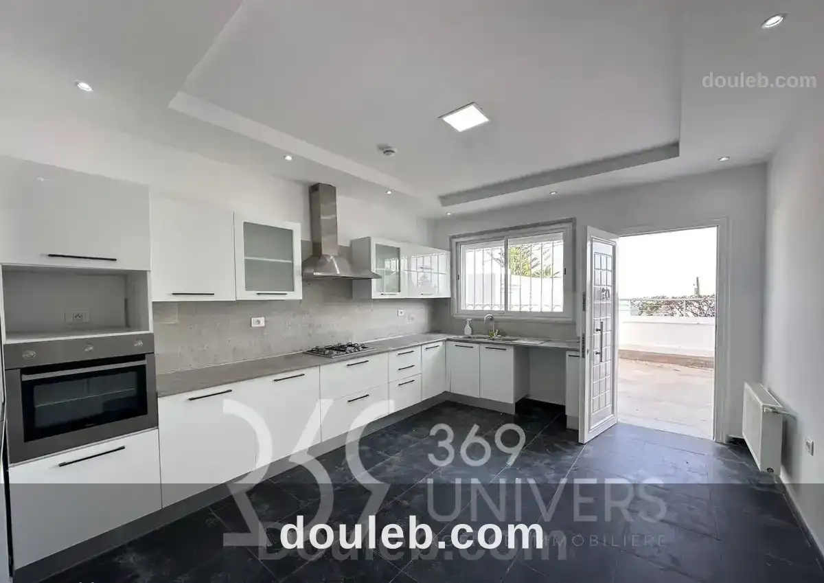 369 univers.a.i, agence immobilière située à la marsa, vous propose à la location un triplex avec vue sur mer à la marsa. il est composé comme suit: au rez-de-chaussée: un salon, une salle à manger, une cuisine équipée, une salle d’eau invités et un débarras, au 1er étage: une suite parentale, 2 chambres à coucher et une salle de bain commune, au dernier étage: une suite junior, un séjour, une terrasse et une piscine-spa.