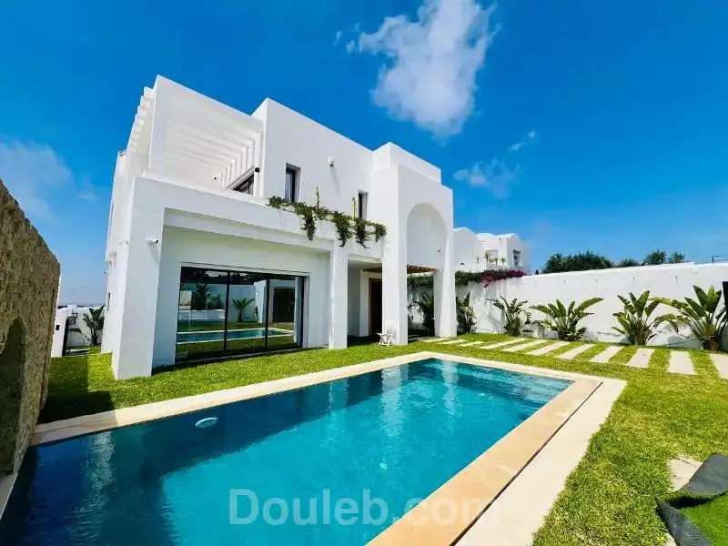 v557 villa brune a vendre chez l’agence smart owner immobilière hammamet, une belle villa de luxe vue sur mer nouvellement construite, située dans un quartier calme et bien sécurisé à hammamet zone craxi. la villa est établie sur deux niveaux: le rez de chaussée se compose d’un spacieux et lumineux salon, une cuisine moderne bien équipée, une chambre à coucher et une salle d’eau pour les invités. quant à l’étage on trouve, trois suites avec leurs propre salles de bain, dressings et terrasse donnant sur une belle vue dégagée sur mer. la villa est équipée de chauffage central et des climatiseurs. a l’extérieur vous bénéficiez d’un joli jardin gazonné, une belle piscine, une douche ainsi qu’un parking pour les voitures. pour éventuelle visite ou plus d'informations veuillez svp contacter mme khouloud sur le 52 177 449 / 54 544 909.