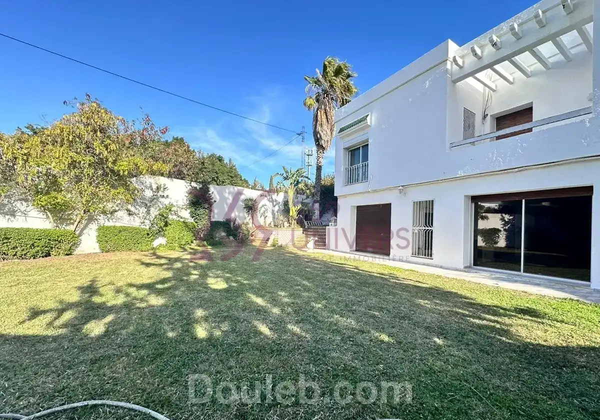 369 univers.a.i, agence immobilière située à la marsa vous propose à la location une villa avec piscine à gammarth. elle se compose comme suit: - au 1er niveau: une suite parentale, une suite junior, 2 chambres à coucher, une salle de bain commune et une kitchenette, - au rez-de-chaussée: un salon avec cheminée, un salon marocain, un séjour, une salle à manger, une cuisine équipée, une salle de repas et une salle d’eau invités, - à l’extérieur: une piscine, un jardin, une terrasse, une chambre de service, une cuisine de préparation et un garage.