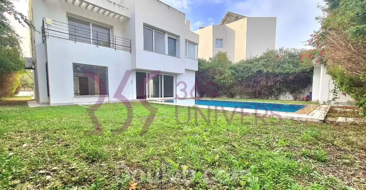 369 univers.a.i, agence immobilière située à la marsa, vous propose à la location une villa avec piscine à la marsa. elle se compose comme suit: -au rez-de-chaussée: un salon, un séjour, une cuisine équipée et une salle d’eau invités, -à l’étage: une suite parentale, 2 chambres à coucher et une salle de bain commune, -à l’extérieur: une piscine, un jardin, une terrasse et un garage.