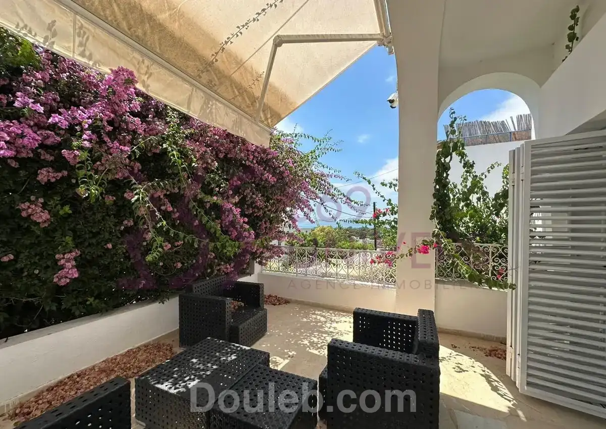 369univers.a.i, agence immobilière située à la marsa, vous propose à la location une villa avec vue sur mer à carthage. elle se compose comme suit: -au 1er niveau: un salon avec cheminée et une terrasse avec vue sur mer, une cuisine équipée avec un coin repas, une salle d'eau invités et une suite parentale, - au 2éme niveau: un séjour avec terrasse, 3 chambres à coucher, un débarras, un dressing-room et une salle de bain commune, - à l'extérieur: une terrasse abritée, une salle de bain, une buanderie et un abri pour 4 voitures.