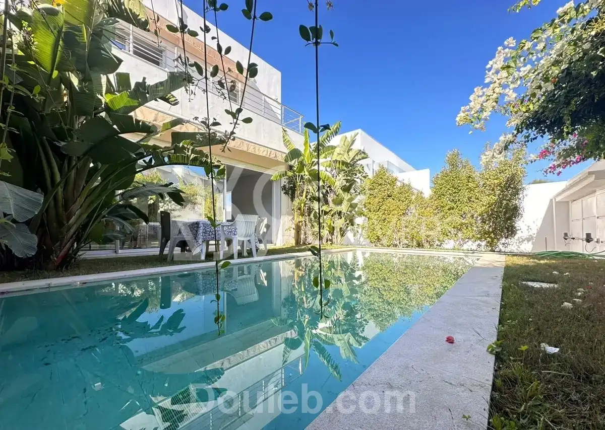 369 univers.a.i, agence immobilière située à la marsa, vous propose à la location une villa jumelée avec piscine à gammarth. elle est composée comme suit: - au rez-de-chaussée: un salon, une cuisine entièrement équipée avec terrasse et une salle d’eau invités, - à l’étage: une suite parentale avec terrasse, 2 chambres à coucher et une salle de bain commune, - au sous-sol: un séjour, une chambre de service, une salle de bain, un hammam, une buanderie et une terrasse d’hiver, - à l’extérieur: une piscine, un jardin, une terrasse et 2 places de voitures. - villa connectée, système domotique (éclairage, climatisation, stores et électro-ménager), hammam avec vapeur, proche de la mer, caméra de surveillance, commerces à proximité. - location en meublée : 7500/mois