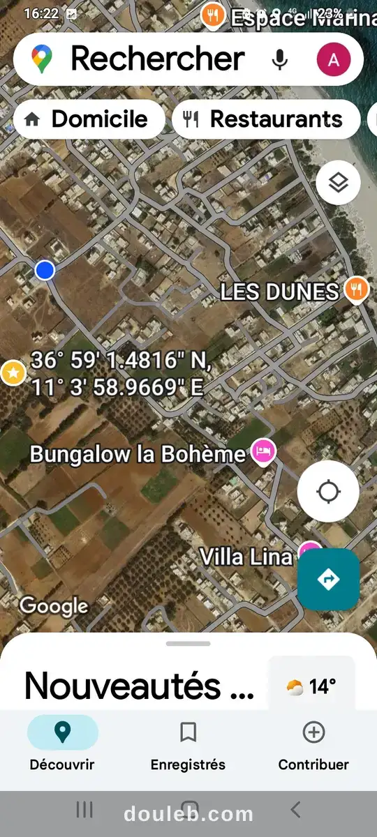 a vendre villa à dar alouch 340 m2 terrain 120 m2 bâtie 3 ch + salon + cuisine s.d eau jardin des 4 côté à 700 m de la plage vue mer et champs agricole en plein nature prix 300 md photos vedios et emplacement par wattsapp 24757937